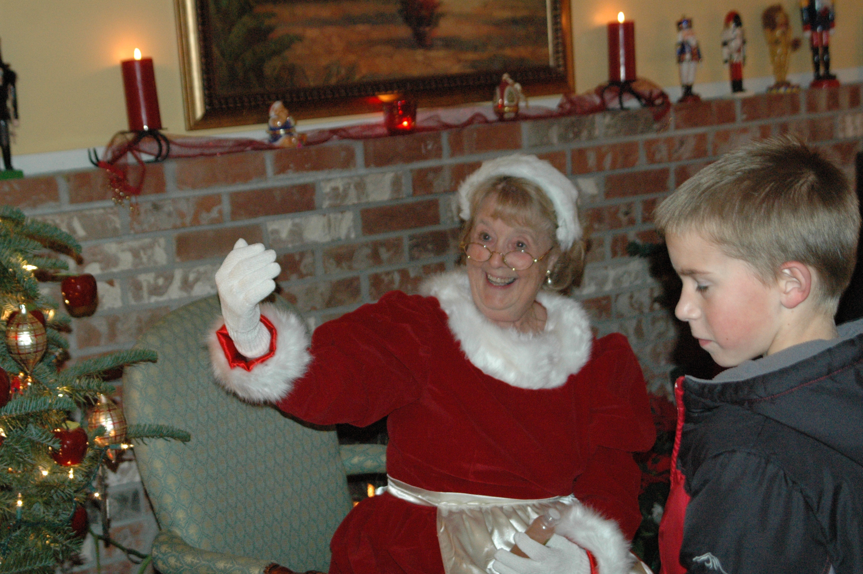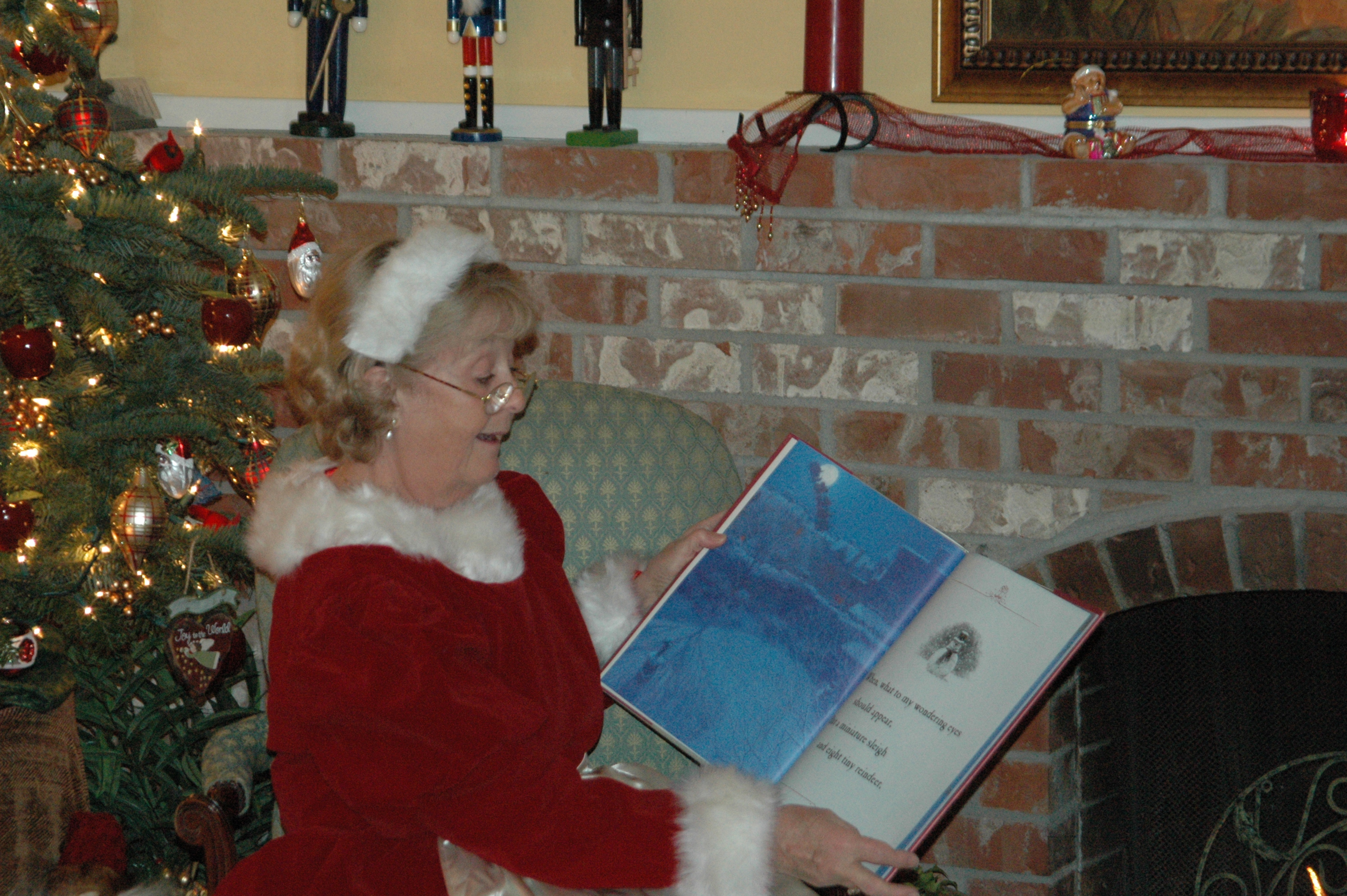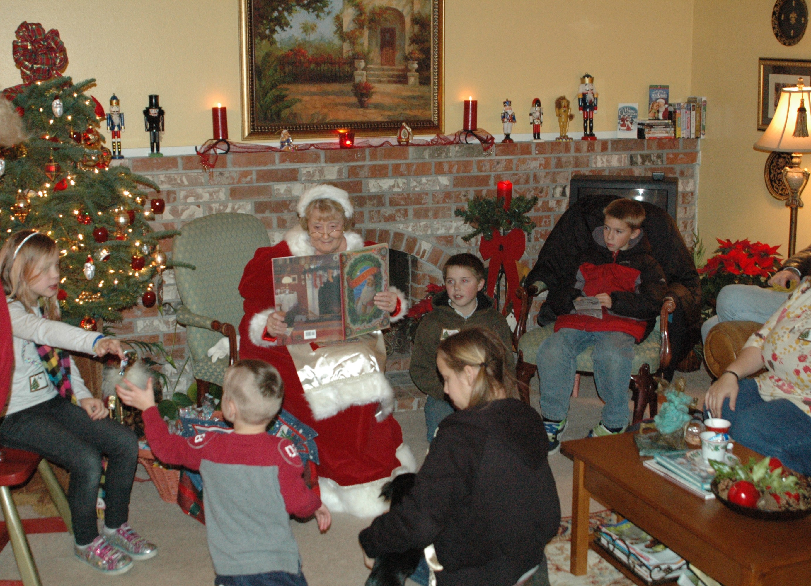 I have heard time and time again about how people were cutting back on spending for Christmas gifts. Sometimes this was due to loss of a job, a downturn in the economy, or just a conscious choice of spending less money or just spending it differently. So, my aunt, Pat, in Gresham, Oregon – just outside of Portland, decided to do something simple for her community and friends. She hosted a party with not Santa….but his WIFE! Her thoughts were…Santa is associated with gift-giving, but Mrs. Claus (my other Aunt Jo) is known for nothing but LOVE…and cookies! So, Mrs. Claus came to my aunt’s home not only read the Night Before Christmas, but also the biblical Christmas Story….the story of Jesus’s birth.